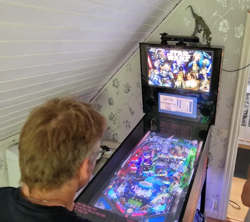 För lite mer än ett år sedan startade jag samla information och teknik för att bygga mig ett eget flipperspel. Inte ett ”riktigt” utan ett virtuellt som ser väldigt riktigt ut. Av den anledningen så valde jag storlek för att återskapa känslan av ett äkta spel. Ljud och bild är nu väldigt autentiskt. Vibrationerna i spelet och ljudet känns som ett äkta spel. Sedan kan olika spel ha lite olika likhet med originalet beroende på den som byggt det. I nuläget har jag lite mer än 800 fungerande spel, med själva spelet, bakgrundsbild, poängräkning osv.