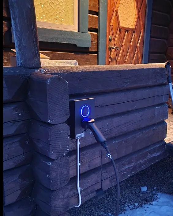 Nu är laddaren installerad. Den här gången med en lastbalanserare eftersom vi har en luftvärmepump som vintertid drar en del. Laddaren kan minska ned hur mycket den laddar bilen från 16A till 6A, men även byta från trefas till enfas om det blir riktigt jobbigt. För våra besök i Sundänge betyder det en elbesparing på ca 200-300 kr per gång då vi kan ladda ”hemma” istället för i Västerås på vägen hem.