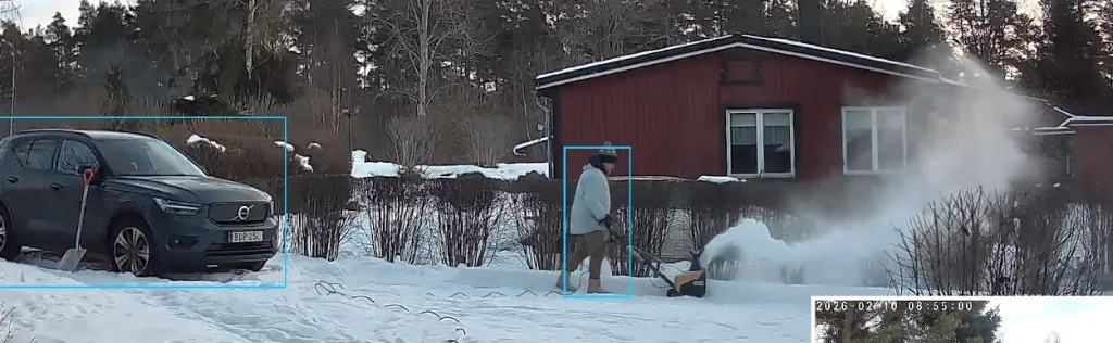 För att vara lite artig och snäll mot elektrikerna så tog jag med snöslungan till stugan och plogade upp parkeringsytan så fler bilar får plats där. Den fick jobba lite i kylan. Snö som packats ned från 40 cm till 15 cm med skare som jag nästan kunde stå på.