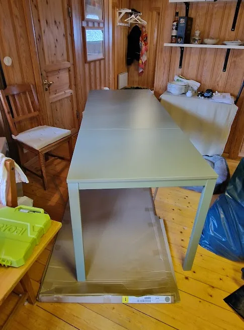 Därefter var det dags för mer målning i sovrummet och efter det byggdes det nya köksbordet upp.